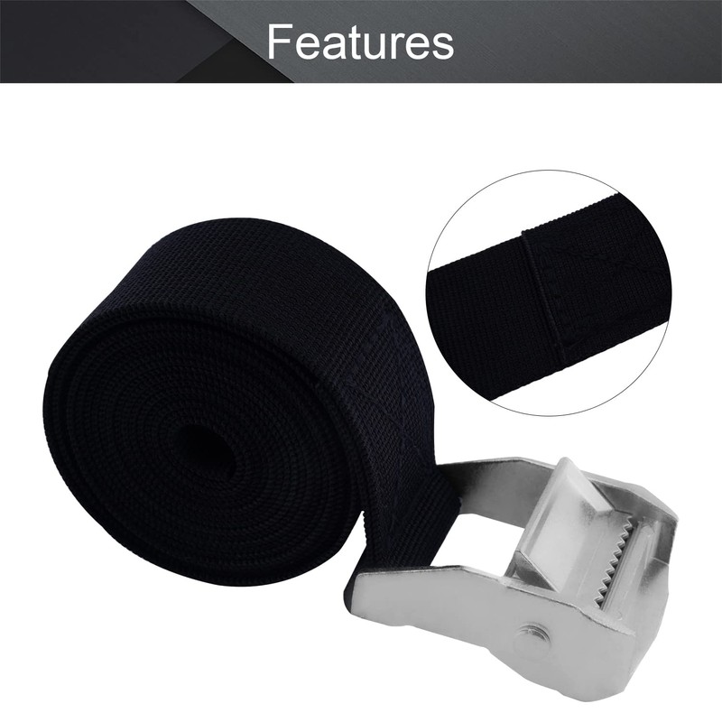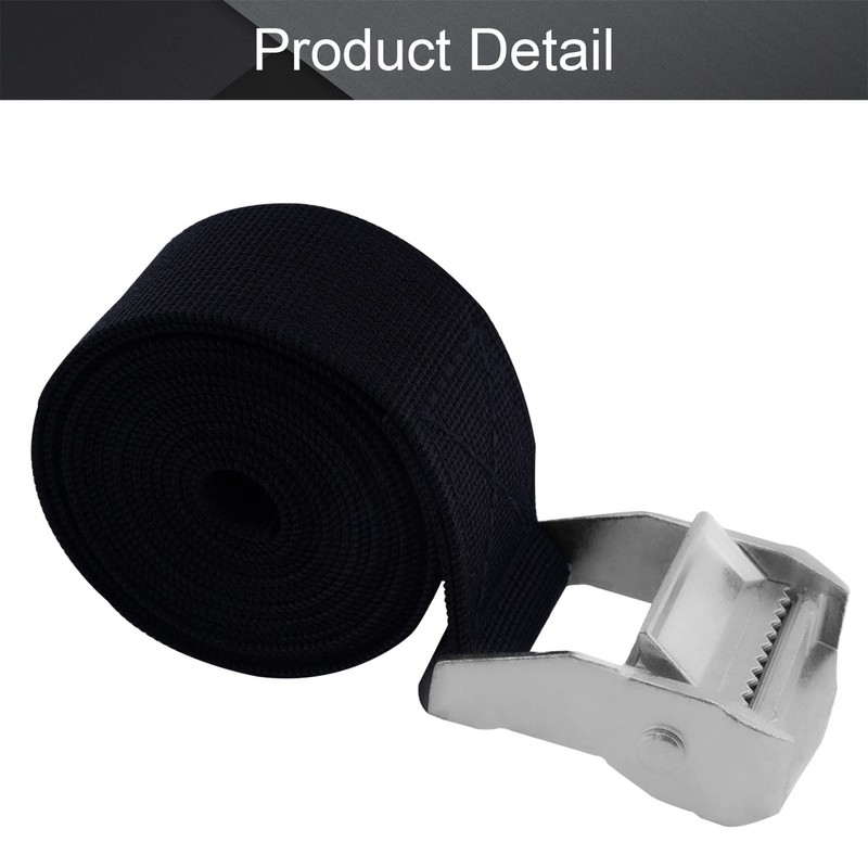 MroMax 1.5" Width x 6.56ft Length Lashing Straps Polypropylene Cam Buckle Lashing Straps 300Kg Load Cargo Tie Down Strap 38mm x 2M for Moving Cargo Black Tone 1Pc