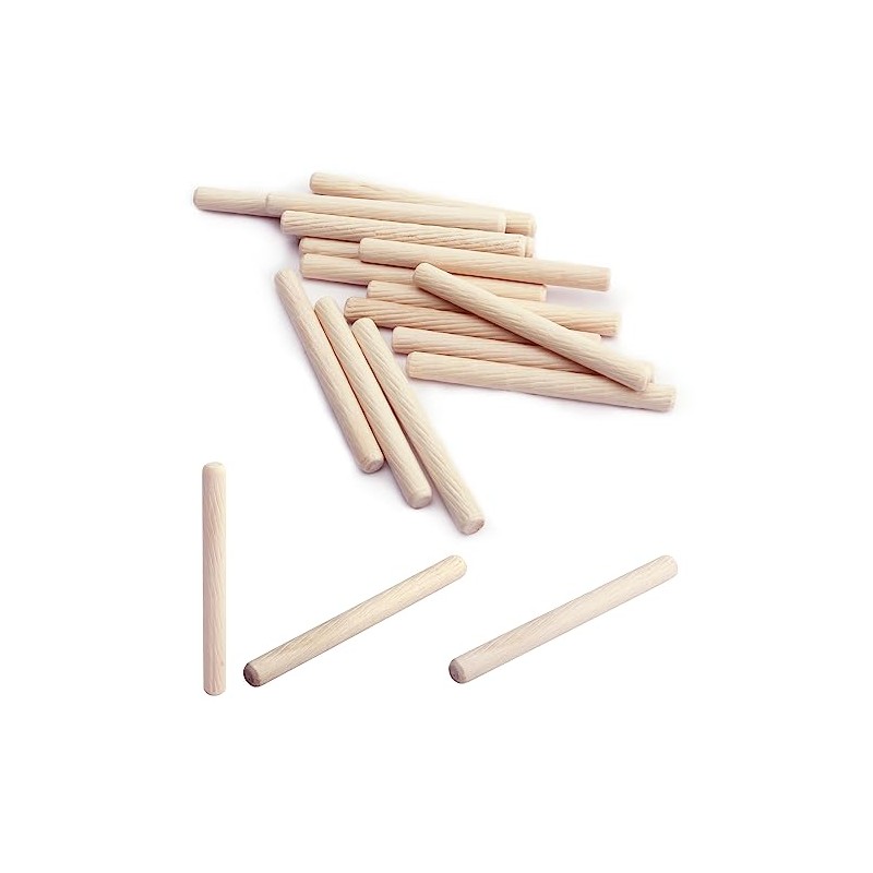 MroMax 8 x 80mm Kiln Dried Fluted Beveled Hardwood Dowel Pins - Pack of 50