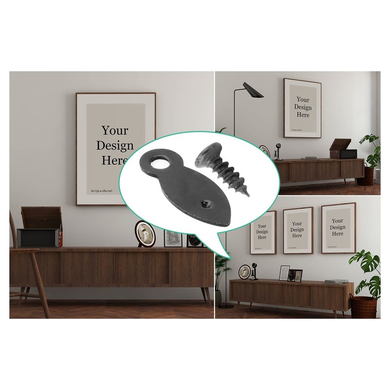 MroMax Frame Turn Button, 0.83 inch Plastic Drop Shape with Screws for Hanging Pictures, Photos, Drawings and Posters, Large Black 50pcs