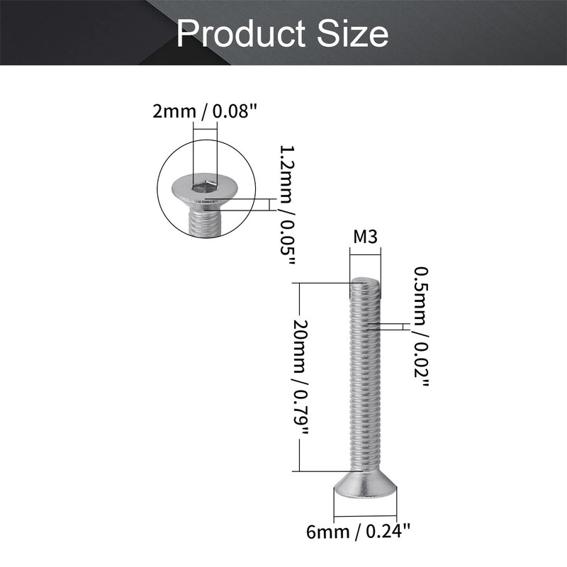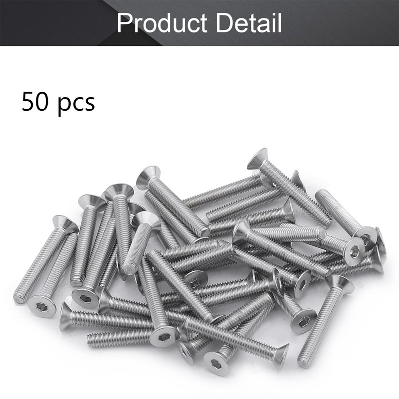 MroMax M3 x 20 Nails, Screws & Fasteners 304 Stainless Steel Hex Socket Countersunk Flat Head Screw Bolts 50pcs