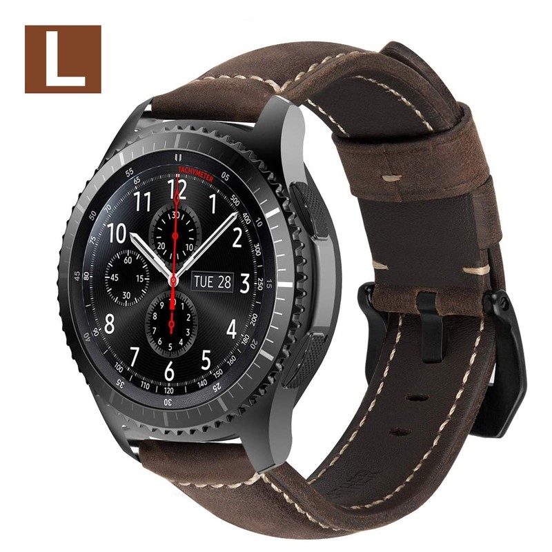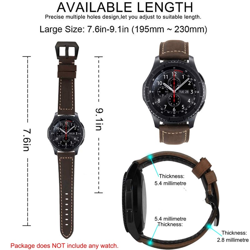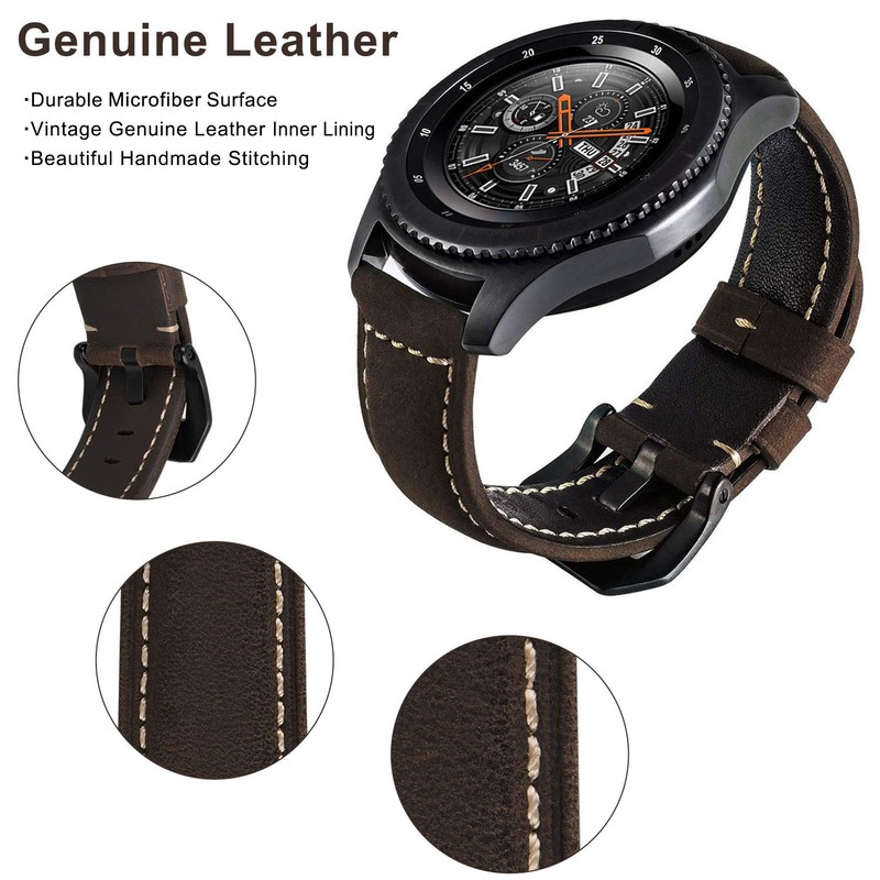 - Exquisite handmade: Vintage leather strap with stainless steel black clasp fits perfectly with your watch. Features exquisite workmanship, makes your watch attractive and elegant, goes well with your daily outfit. For more selection, please search for "MroTech Bracelet Gear S3".