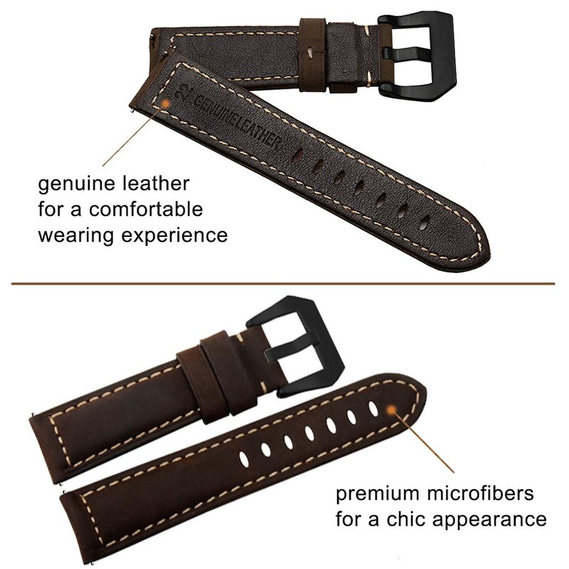 - Premium material differs in two sides for all seasons. Smooth genuine leather bracelet inside is skin-friendly, breathable and comfortable on the wrist. The soft microfiber exterior shows off your unique, classy style. ★ The 22 mm watch strap leather dark brown large for wrist: 19.5 cm ~ 23 cm (7.6 inch ~ 9.1 inch)