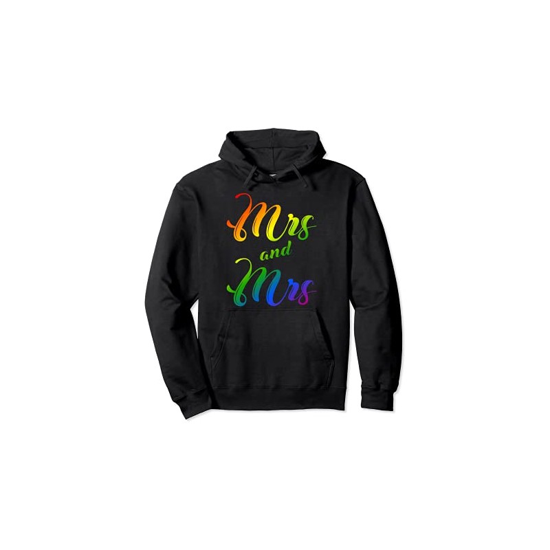 Mrs. And Mrs Just Married Lesbian Bridal Rainbow Color Print Pullover Hoodie