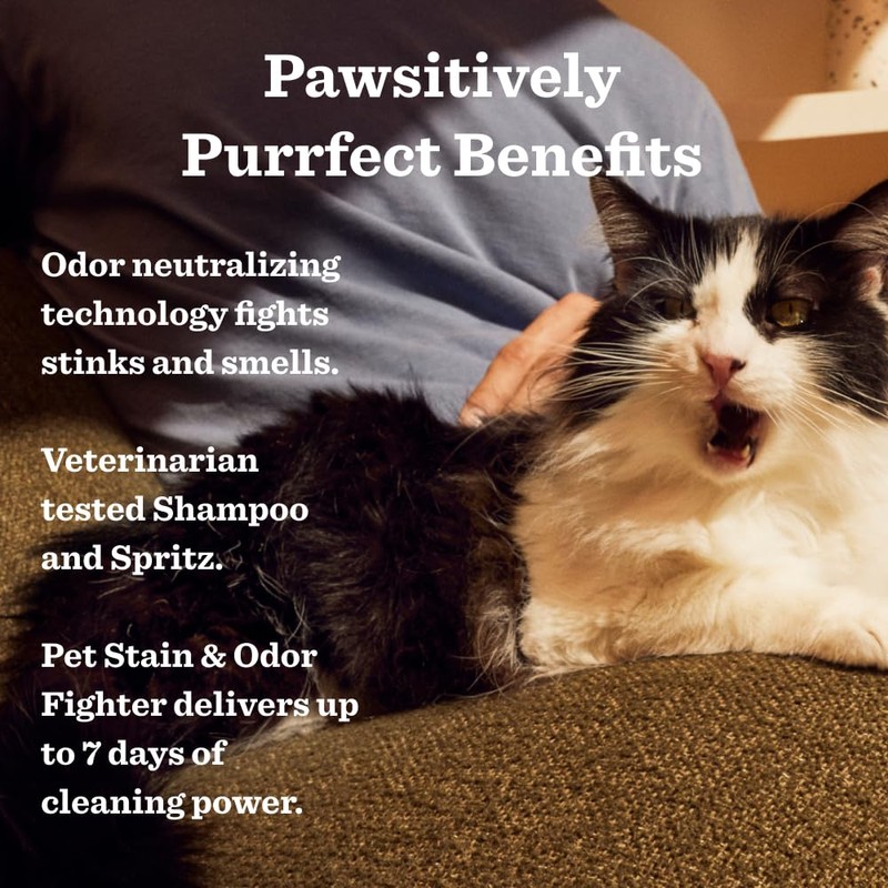 - GENTLE BUT EFFECTIVE: Cat Deodorizing Spritz adds a quick shine to coats. Pet Stain & Odor Fighter tames any messes and stinks on soft surfaces