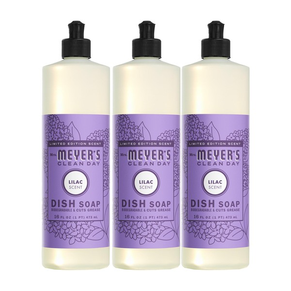 MRS. MEYER'S CLEAN DAY Liquid Dish Soap, Lilac Scent, 16 Ounce Bottle (Pack of 3)