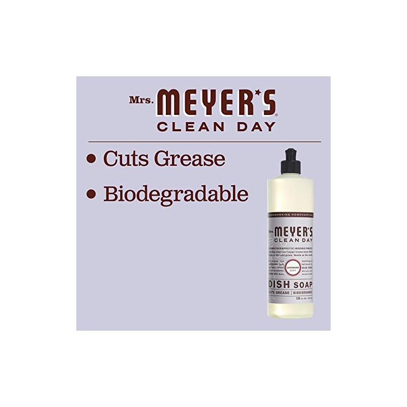 Mrs. Meyer's Clean Day liquid dish soaps are specifically made to make grease disappear, while also providing a special, singular scent for your home. Lavender has long been prized for its original and clean floral scent. Such a pretty and reassuring herb! Our biodegradable formula dish liquid cuts through grease and is designed for hand washing dishes, pots, and pans. The liquid dish detergent contains plant-derived cleaning agents and other thoughtfully chosen ingredients that make dishes clean and bright. It's a Dish Soap made without parabens, phthalates, or animal-derived ingredients. And of course, this is a cruelty-free formula product. Also available in other garden-inspired scents and products such as Hand Soap and Multi-Surface Cleaner. Mrs. Meyer's - Rooted in Goodness.