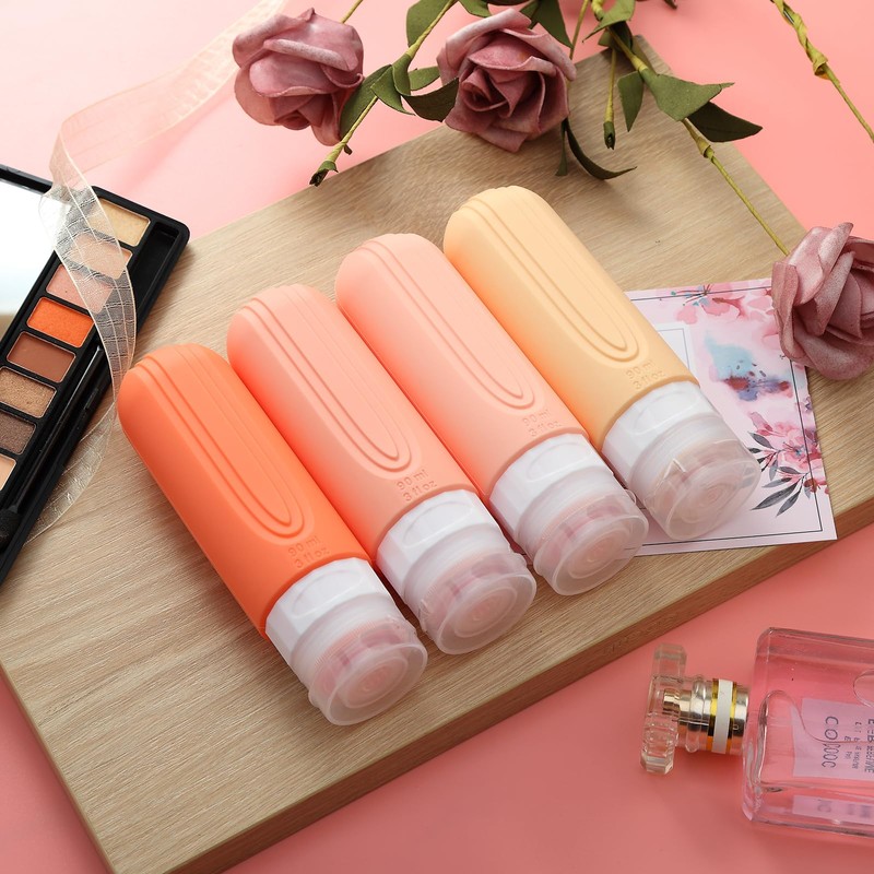 Mrsdry Travel Bottles for Toiletries, Tsa Approved 3oz Travel Size Containers BPA Free Leak Proof Refillable Liquid Silicone Squeezable Travel Accessories for Shampoo Conditioner Lotion (4 Pack)