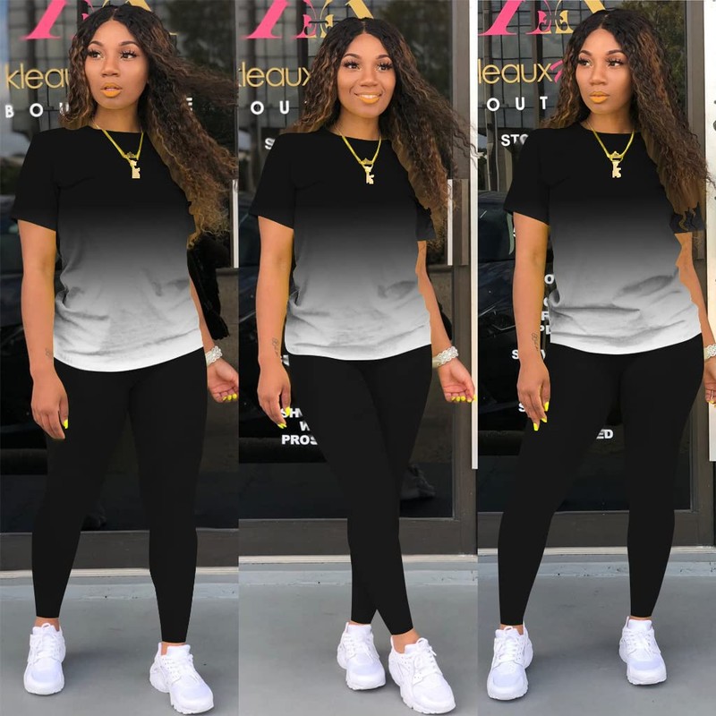 Mrskoala Women Two Piece Outfits Summer Sweatsuits Matching Jogger Sets Loungewear Tracksuit Gradient Black L