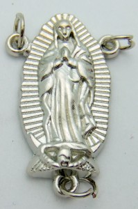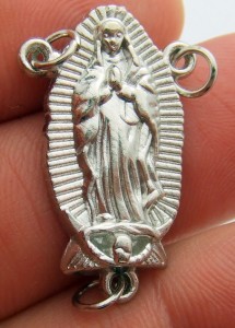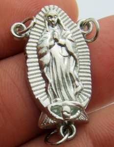 MRT Our Lady of Guadalupe Silver Plated LARGE Rosary Centerpiece Part 1" Gift