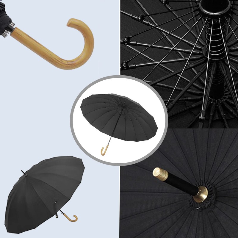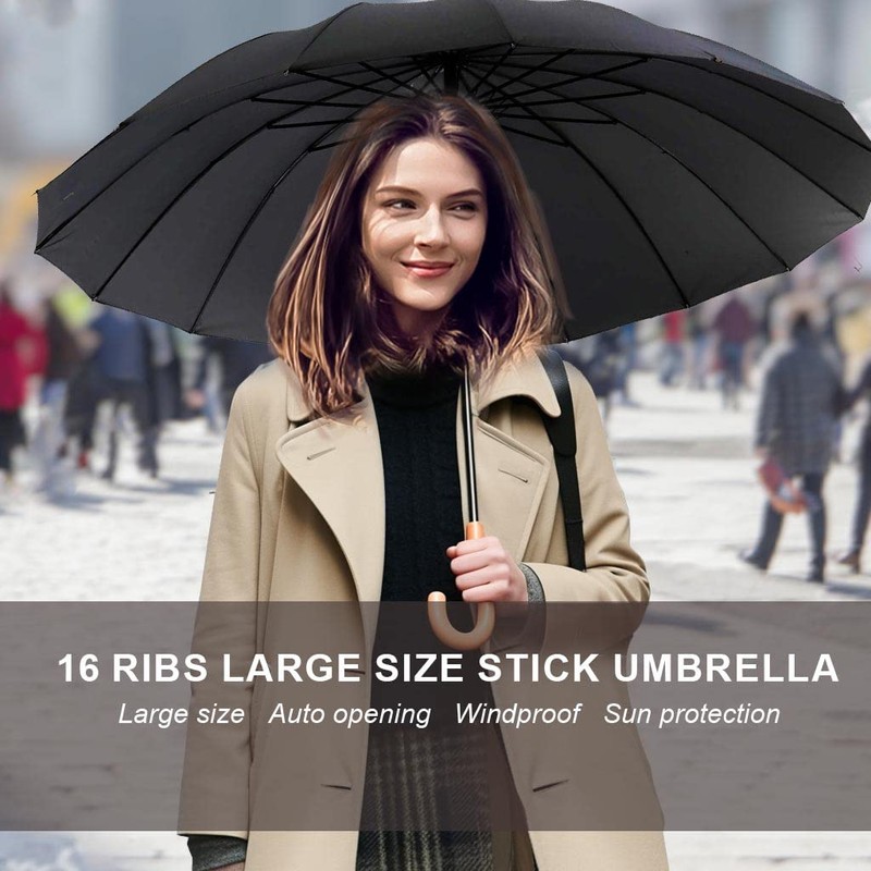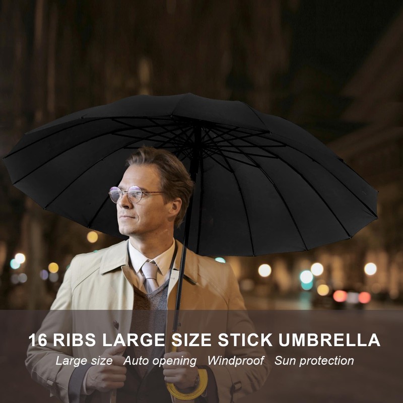 - [WINDPROOF ☂] Heavy duty design: 16 rib fiberglass construction attached to the metal shaft.