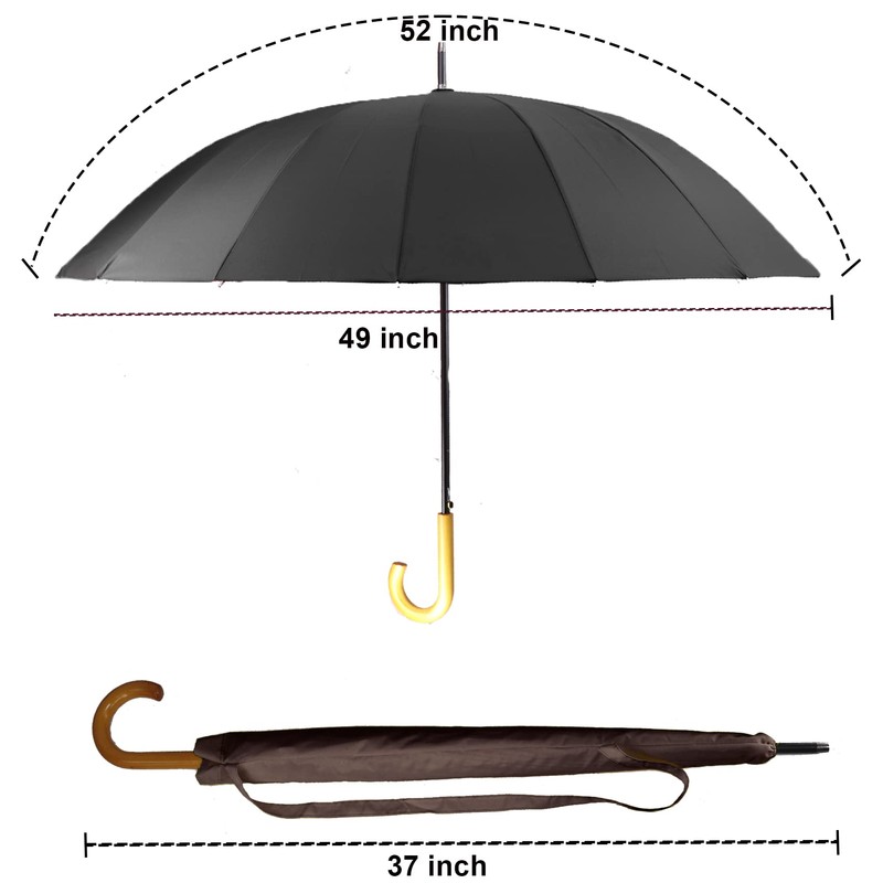 MRTLLOA 52 Inch Windproof Large Umbrellas for Rain, 16 Ribs, J Wooden Handle, 210T High-density Fabric Golf Stick Umbrella(52 Inch, Black)