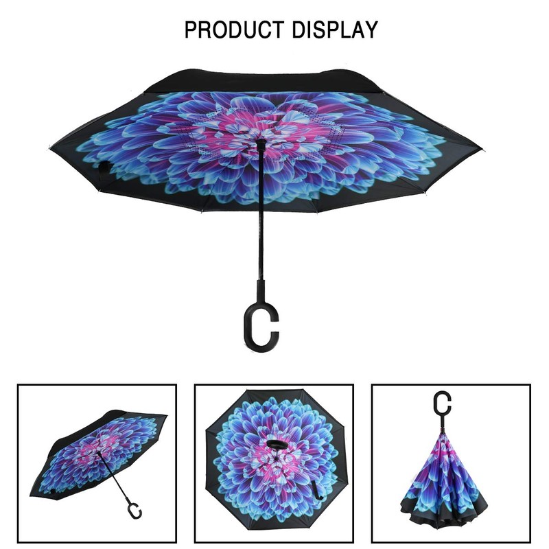 - ☂Ideal Gift & Quality Guarantee: This car reverse umbrella is perfect for your car; it's also a creative gift for your parents, friends, colleagues and etc. Using this reverse umbrella, you are always protected from rain, wind and UV. If anything goes wrong with your umbrella, we will send you a replacement absolutely free, no return required.