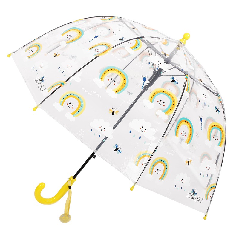 MRTLLOA Kids Rainbow Clear Bubble Umbrella, Toddler Grip Curved Handle Stick Rain Umbrella(Rainbow)