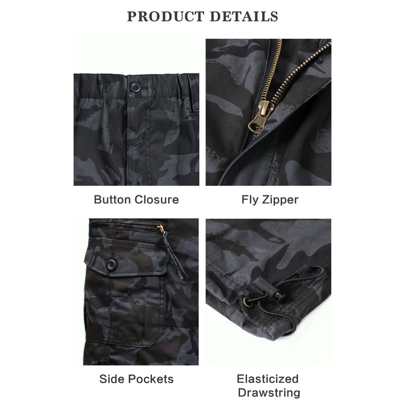 - Adjustable Closure: Zip fly with button, elastic comfort waist & durable belt loops for a personalized fit.