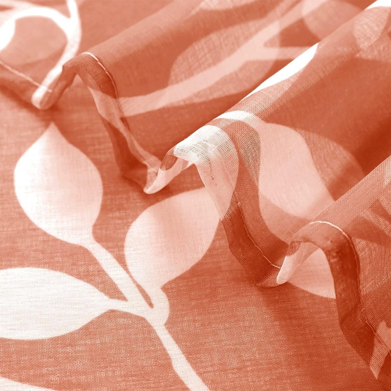 MRTREES Curtains with Eyelets Transparent Orange Red for Living Room Bedroom Modern, Voile Curtains with Pattern White Leaf Print Set of 2, 225 cm Long, 140 cm Wide, Living Room Curtains