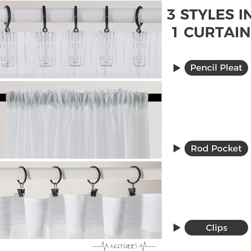 - THREE HANGING METHODS Our curtain meets the hanging methods of three other curtains on the market, except for eyelet curtains. You can choose one as you like. These are curtains with ruffle tape, curtains with loops, curtains with Staneg pocket