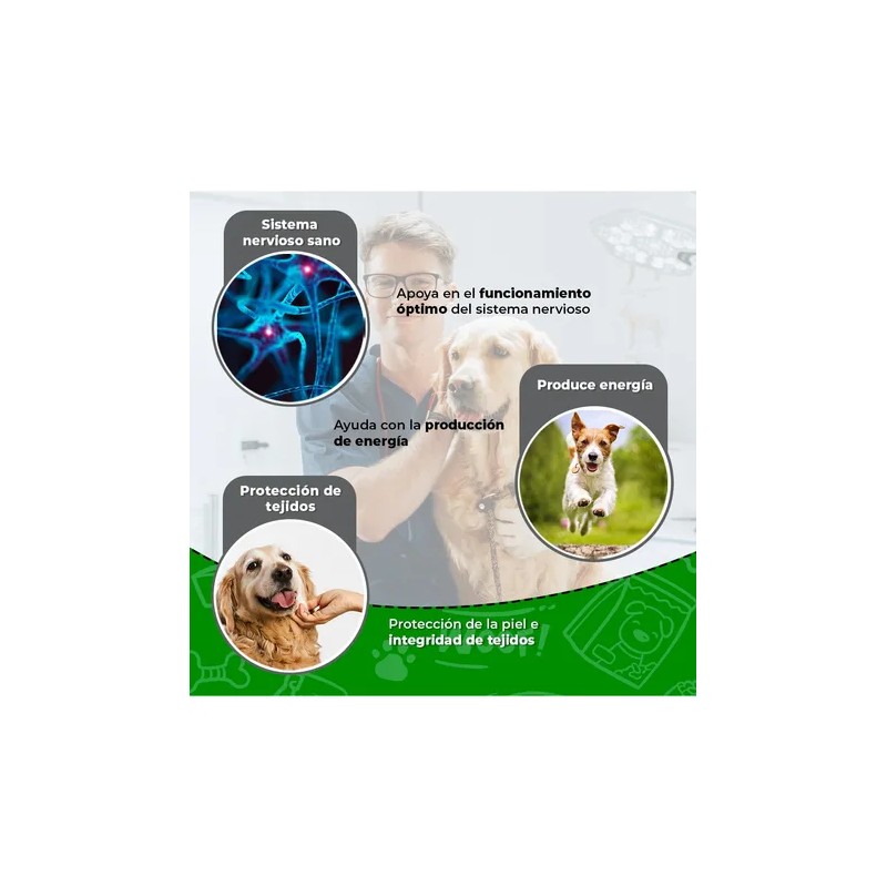 -No sustituye tratamientos médicos. Consulte al veterinario si su perro presenta alguna condición médica.