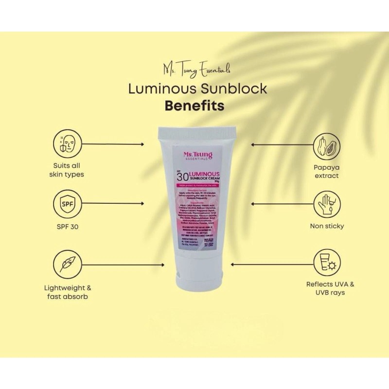 Experience the ultimate protection and hydration with Ms. Tsung ESSENTIALS SPF 30 Sunblock Cream. Specially formulated to suit all skin types, this lightweight and fast-absorbing cream provides broad-spectrum protection against harmful UVA and UVB rays, ensuring your skin stays safe while enjoying the sun.