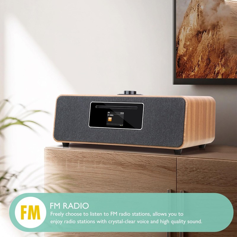 MS5P Internet Radio with CD Player for Home, WiFi Radio, FM Digital Radio, Spotify Connect,Bluetooth Speaker, Home Stereo System,USB Player,USB Charging,Dual Alarms Clock, OKTIV APP Control- Walnut