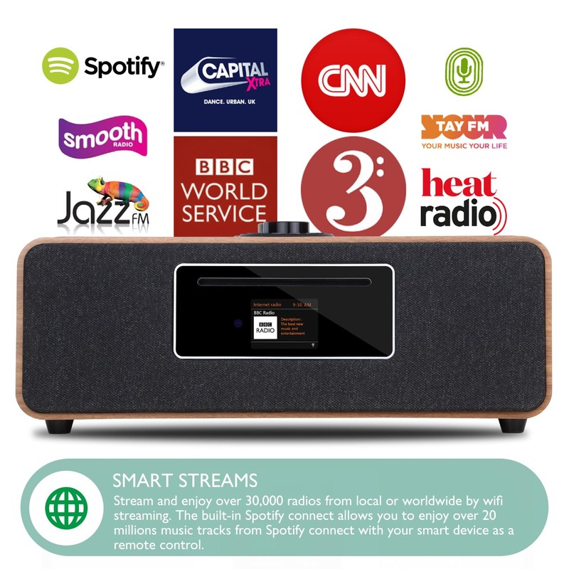 - 【Smart Radio】 - This Internet Radio Players Systems support the very latest streaming services such as Spotify Connect, enjoy listening to millions of tracks as well as over 30,000 radio stations from around the world.