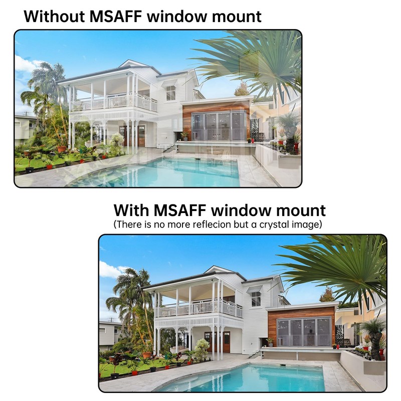 - VERSATILE GLASS SURFACE MOUNTING - Designed for single-frame transparent glass surfaces like windows, doors, and cabinets, our bracket also fits fish tanks. This lets you position the camera outside, deterring tampering.