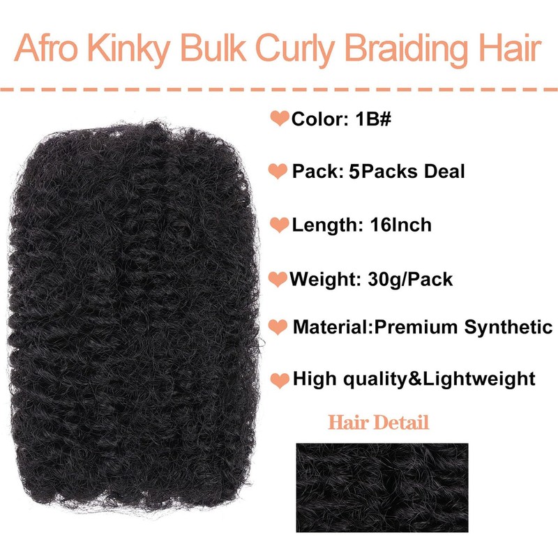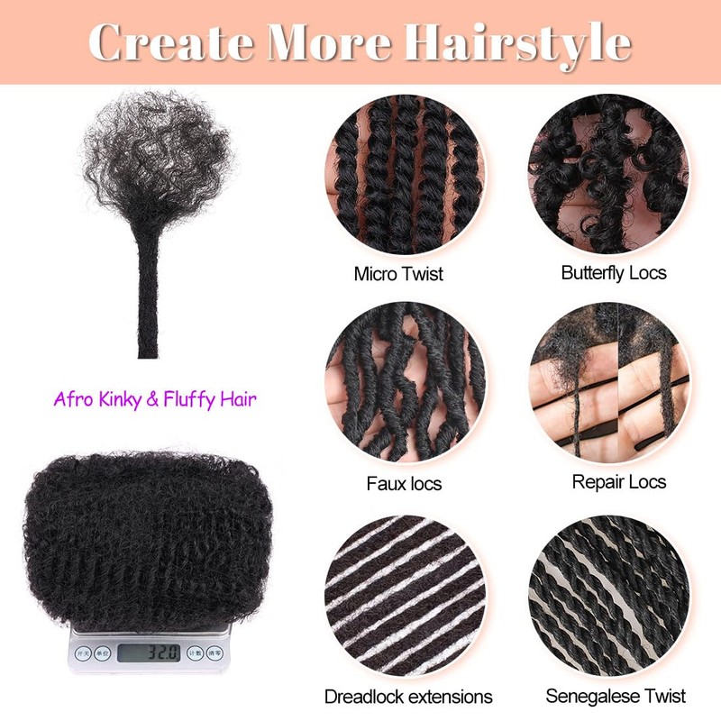 - For Multiple Hairstyles: Afro Kinky Curly Braiding Bulk Hair is ideal for make different hairstyles with Afro Kinky Curly Braiding Bulk Hair, such as Butterfly Locs Crochet Hair, Distressed Locs, Dreadlock Extensions Repair Locs, Micro Twist Crochet Hair, Mini Passion Twist Hair