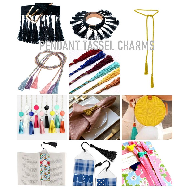 - Embellish your outfit,boot or home with tassels by tassel earring, tassels garland,tassel banner,tassel scarves,tassel bracelets,tassel necklace,boho tassel accessories,tassel key chain,tassel purse,tassel bag,tassel shorts,tassel pants,tassel sandals,tassel curtain,tassel blanket,tassel bed skirt,tassel knob bobble,tassels wall hanging,tassels Christmas tree decorations,tassels gift wrapping, graduation tassels,tassels scrapbook, tassels bookmark,etc creative tassel crafts.