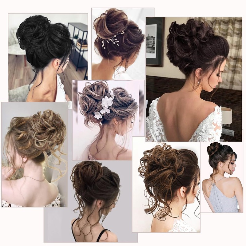 - Easy to use for daily updo ponytail hair extensions style wear: curly, wavy, 2 pcs messy bun, scrunchie synthetic hair. Bun hair can be used for adding volume and fullness to a bun or ponytail, comfortable.