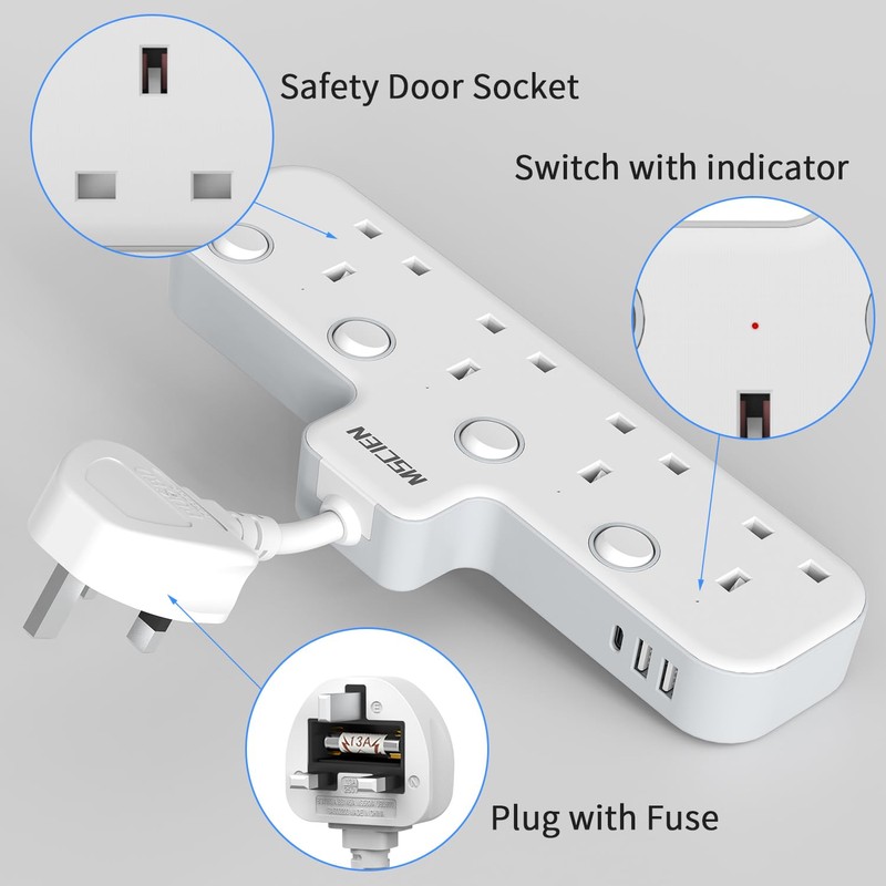 • 【Safe Extension Plug】Safety is the first concern for our multiplug extension. Built-in 13A fuse & Built-in safe door & flame-retardant material, it ensures your electronic appliances are properly protected.