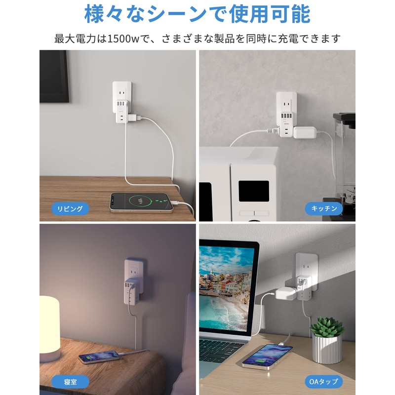 • 7-in-1 Outlet Tap: Multi-tap with 4 USB-A ports and 3 AC outlets. In addition, it distributes AC outlets in 3 directions, allowing you to insert a small AC adapter at the same time without interference