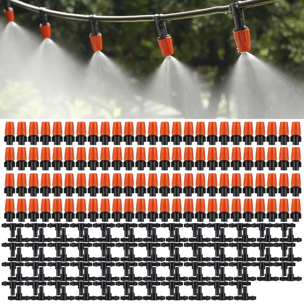 - Product included: 100 Pack of Adjustable irrigation mister with 100 connect Tee. In summer,it will provide you a cool outdoor areas.