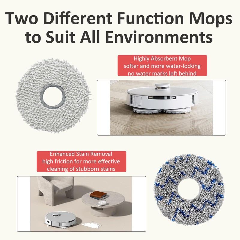 - Funktionen: Das Bodenwischtuch besteht aus Mikrofasern, hat eine starke Wasseraufnahmef?higkeit und funktioniert gut auf verschiedenen Bodenbel?gen wie Fliesen, Marmor und Holzfu?b?den. Saubere Bodenwischer sorgen daf1r, dass Ihr Staubsaugerroboter in einem optimalen Arbeitszustand bleibt.