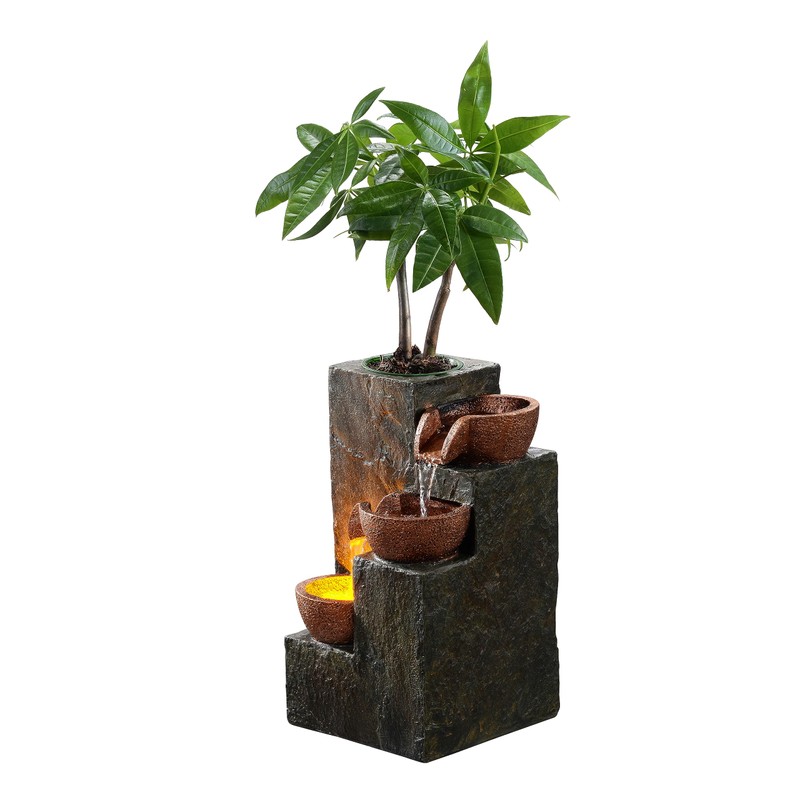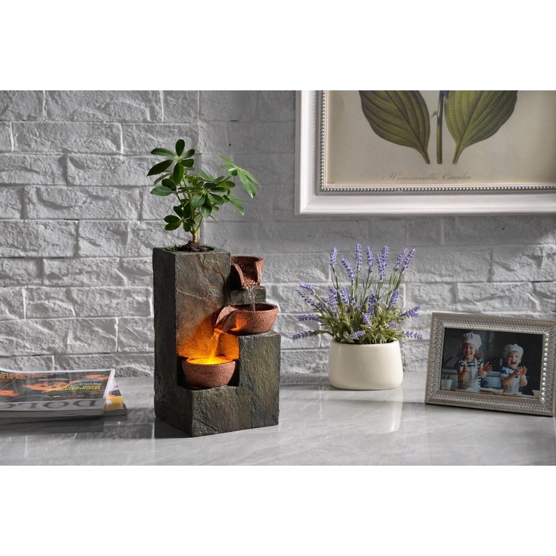 MSEONWXI Indoor Fountain Waterfall Tabletop for Home Decor Three Bowls Rock 3 Tier Fountain Relaxing and Sound Plant by Yourself(23061)