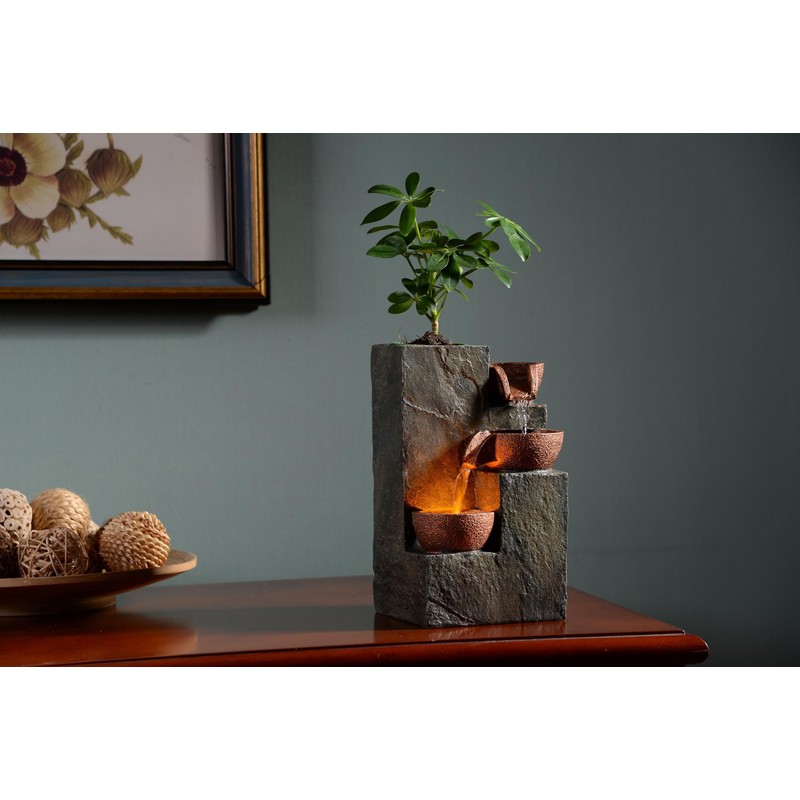 - Relaxing Ambiance: Enhance your indoor space with this Three Bowls Rock Fountain, creating a calm and soothing atmosphere with the sound of trickling water.