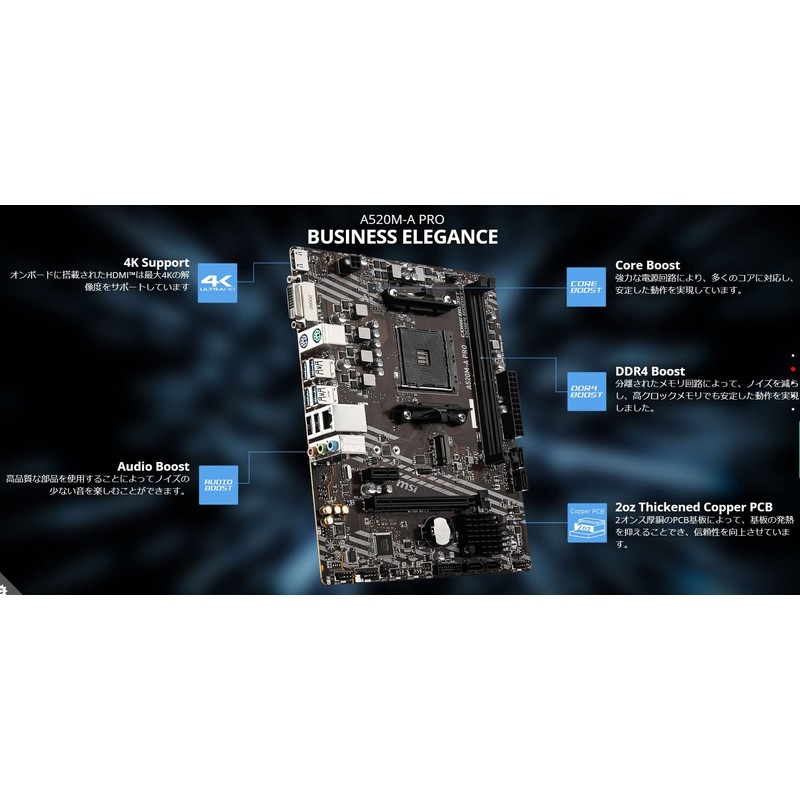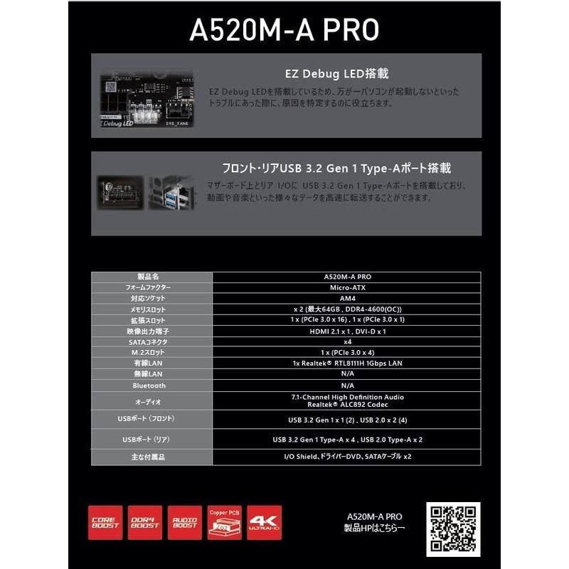 - 【Chipset/Socket】AMD A520 / AM4 (Renoir compatible) Not for AMD Ryzen 5 3400G and AMD Ryzen 3 3200G )