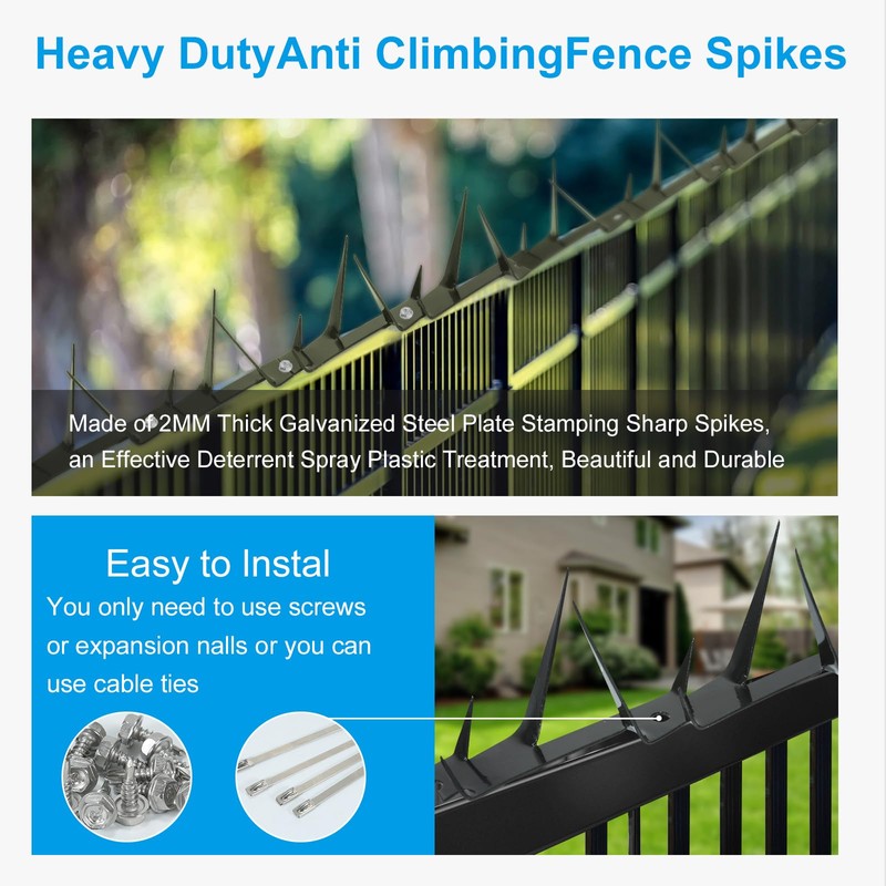 - FUNCTIONS: Anti-climbing spikes are a visual and physical deterrent to keep intruders from climbing fences or walls, preventing raccoons, squirrels and burglars from entering your property