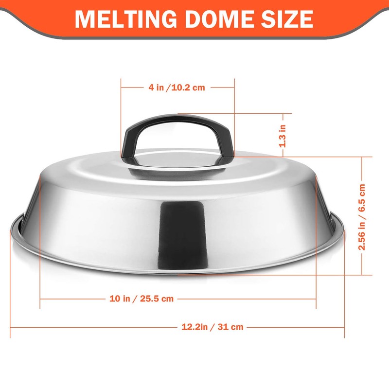 - 🔥【Premium Stainless Steel】 : Our Melting Dome is made of premium stainless steel, BPA-free, rust-proof, safe, healthy and durable. The strong and thicker steel will not deform or break during long-term use, making it a perfect grill accessories.