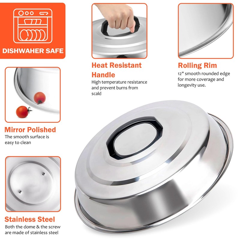 - 🔥【COOK EVENLY】: Ideal for concentrating heat to cook meat evenly, melt cheese or steam vegetables. Create an oven-like environment to reduce cooking time. Plus, it helps reduce splatter and helps food retain its flavor