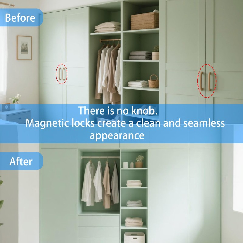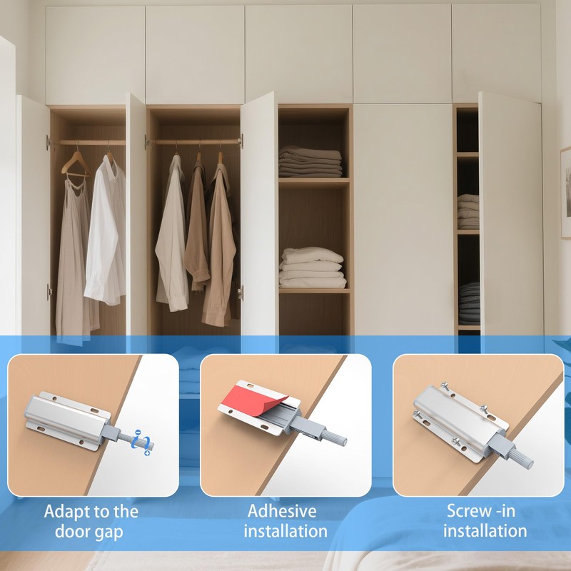 • Premium Touch Latch: This push magnetic cabinet latch is made of aluminum alloy shell and ABS material, which is more durable and long-lasting. The long-stroke magnetic force of the built-in magnet ensures safe closure, making the door close more tightly, which is more suitable for cabinet doors.