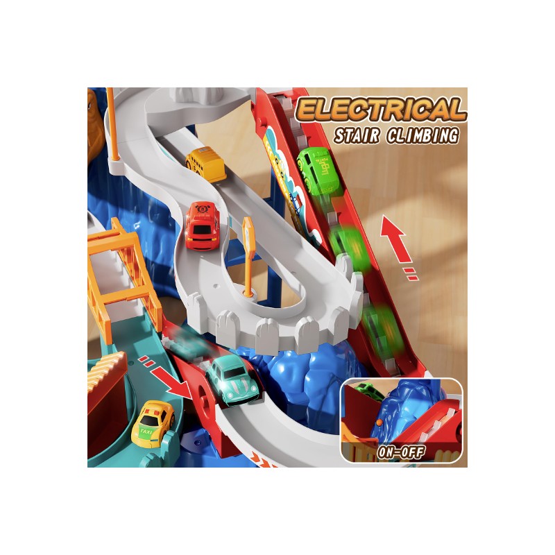 Exciting Racing Games: Suitable for indoor and outdoor play, this dinosaur race track for kids 3-5 lets families enjoy parent-child time together. Whether it's a solo racing playing or family race, the car race track for toddlers 3-5 brings hours of fun