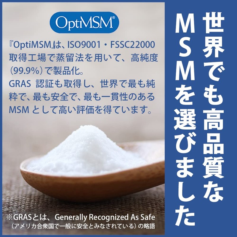 - MSM is made of high purity, high quality optiMSM and GRAS certification. Powder is 99.9% pure. The officially name is methylsulfonylmethane. It contains Iowu ingredients. Many of our customers use them for their pets