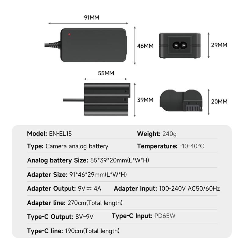 - 【Package Includes & Serivice】 30 days refund, 1 year warranty and friendly customer service. Packing parameters: 1 * EN-EL25 Power Adapter, EN-EL25a dummy battery, 1*US Plug AC Cord, 1*Instruction Manual, Please feel free to contact with us for any questions.