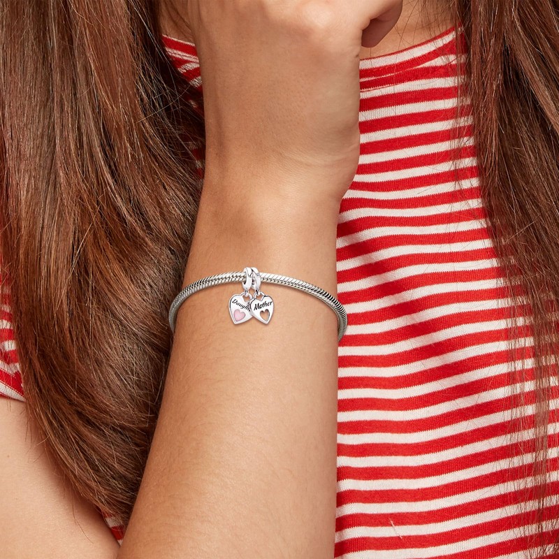 MSPOVOF Mom Charms Heart Pendant S925 Sterling Silver Bead for Bracelet Necklaces Jewellery Gift for Women, Cubic Zirconia