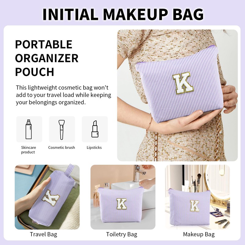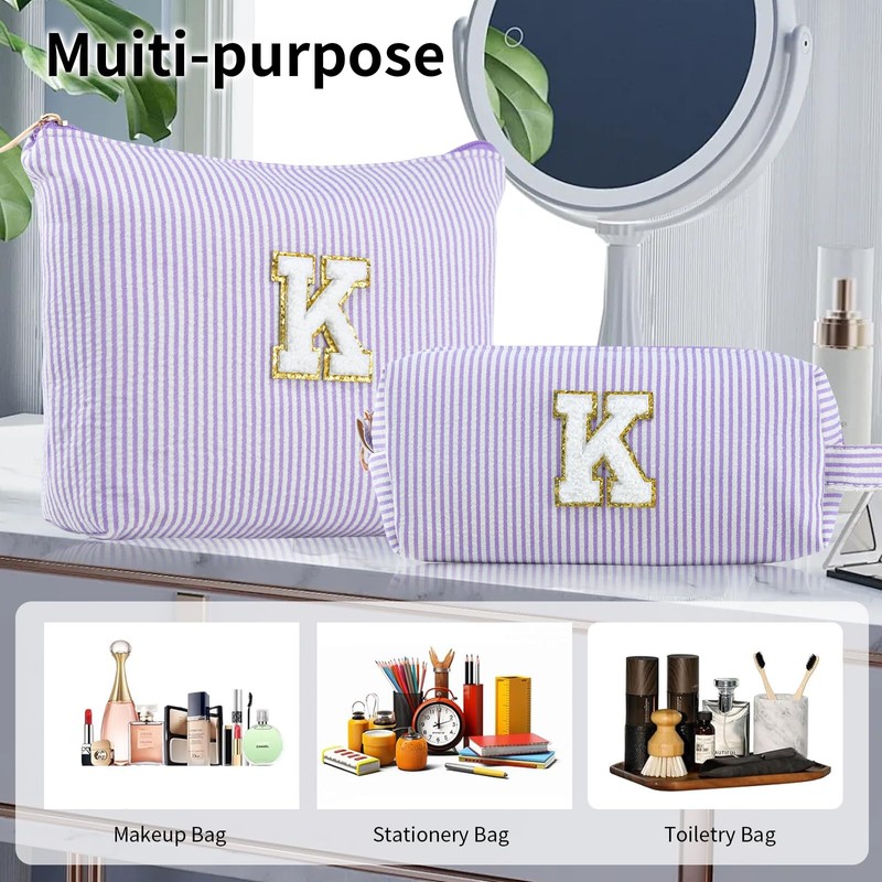 MSQ A-Z Personalized Initial Make up Bags (K, Purple)