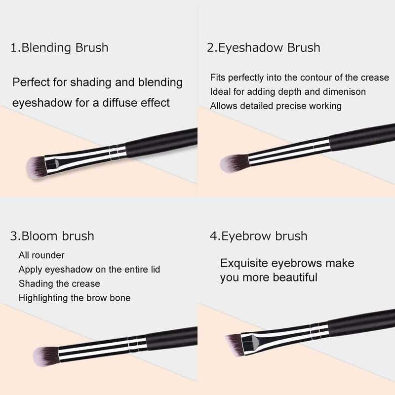 - EYE MAKEUP BRUSHES SET: Including eyeshadow brushes, blending brushes,eyebrow brush and Highlighter brushes. Simple 4 brushes can be done perfect eye makeup