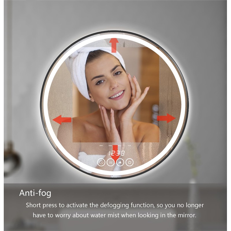 - 【Anti-Fog Benefits】Our LED lighted mirrors are equipped with an anti-fog system, preventing the LED vanity mirror from getting foggy while using. The mirror has a touch switch that can separately control the anti-fog function during showers. This means you can use the mirror instantly after hot baths or showers, without the need to wipe it down or wait for it to defog. Enjoy a clear, fog-free reflection every time!