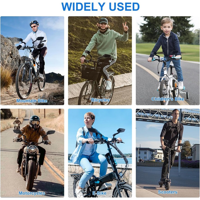 • 【Aplicación Multipropósito】Este espejo de bicicleta es adecuado para bicicletas eléctricas, bicicletas de carretera, bicicletas de montaña, otocicletas, bicicletas eléctricas, scooters, bicicletas de nieve, etc.