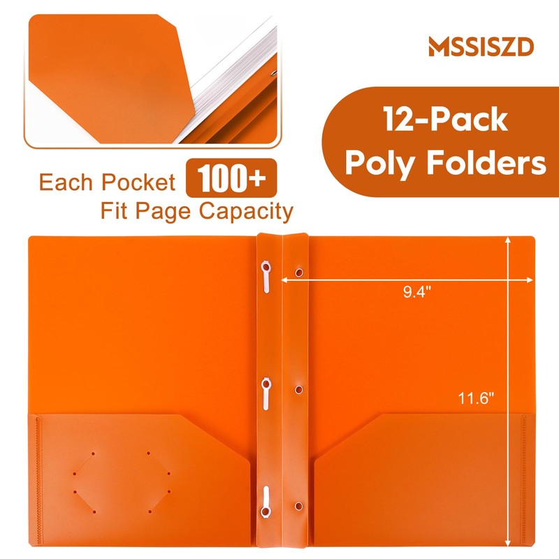 MSSISZD 2-Pocket Folders with 3 Prongs,12-Pack Plastic Folders with Pockets a...