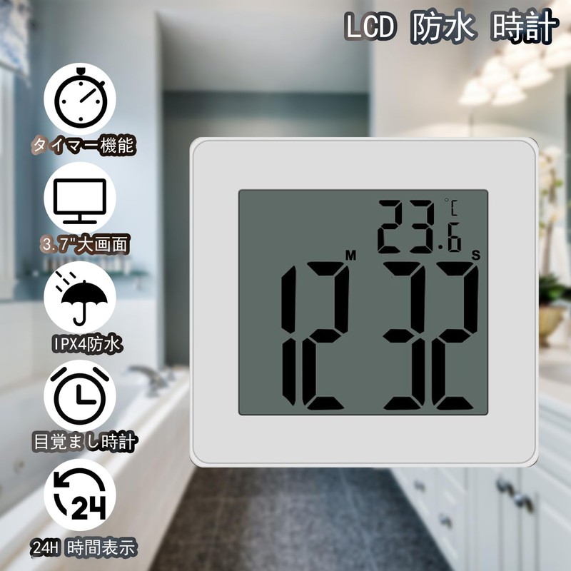 - (Achieving Time Management) The digital watch is equipped with a large LCD watch display, so you can easily check the time from a distance. Fully waterproof design to withstand steam showers, can be used in bathrooms, kitchens, homes and offices. Time management, timing accomplishment, saves energy on water, electricity, etc