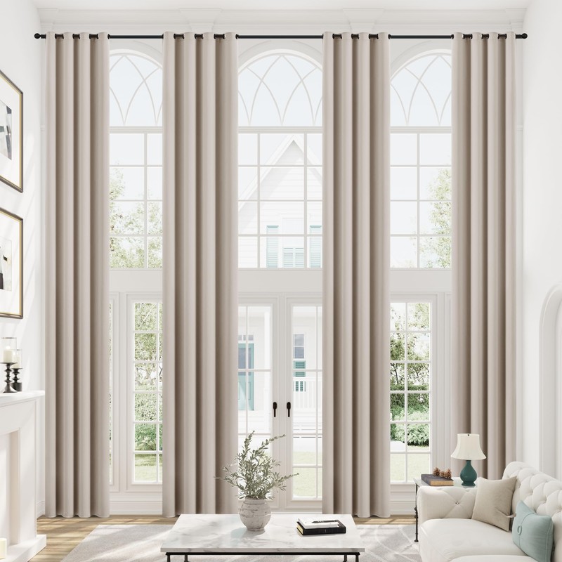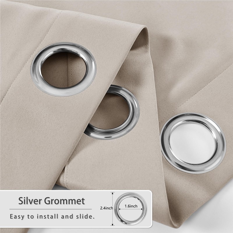 - Grommet Top: The metal grommets are securely embedded in the composite fabric, allowing for smooth sliding on the curtain rod for high living room and minimizing wear and tear, ensuring long-lasting performance and easy hanging